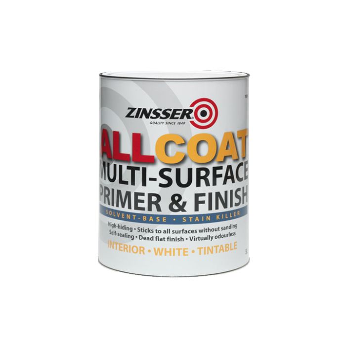 Zinsser AllCoat Solvent Based Multi Surface Primer and Finish is a solvent based product with excellent hiding power, that has been specially formulated to offer a one coat protective system. AllCoat Solvent Base is a 4-in-1 primer, sealer, stain blocker and finish.