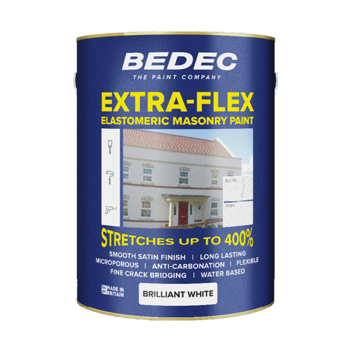 Bedec Extra Flex Masonry Paint is perfect for rough-cast, pebble dash, brickwork, cement, and concrete rendered surfaces, providing a smooth, long-lasting finish that stretches up to 400% to prevent further cracking.