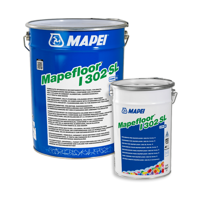 - Available in Mapefloor I 302 SL (neutral) 20kg kits of component A 16kg, component B 4kg.