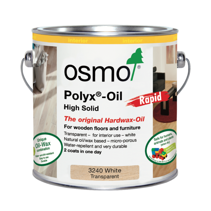 Osmo Polyx Oil Rapid is best used for producing a clear, fast drying, satin-matt finish for all wooden floors, including, laminate, oak, timber and various other wooden surfaces. Suitable for indoor environments, the finish is resistant against wine, beer, cola, coffee, tea, fruit juices, milk and water.