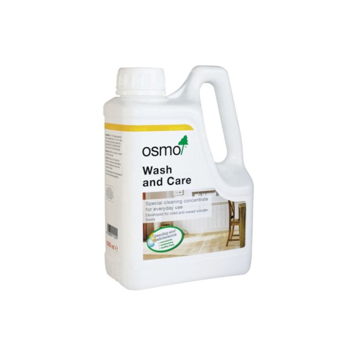 Add to water (on cap per litre of water) and wipe the floor with a moist cloth or mop. It cleans the surface and freshens up the floor at the same time Osmo Wash and Care does not form a film on the surface and therefore can be used without having to remove residue of the cleaner from the surface.