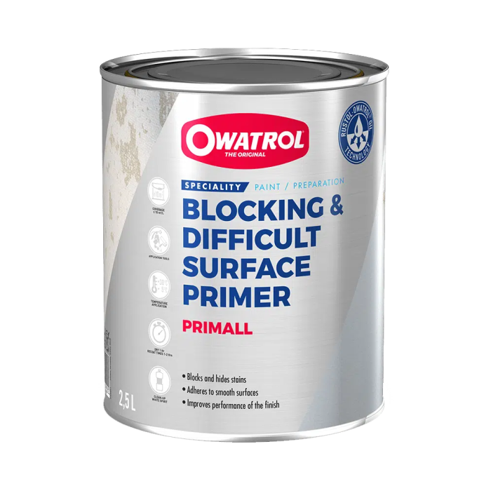 Owatrol Primall is a fast drying interior primer, that blocks stains such as water, fire and smoke damage as well as priming difficult surfaces.