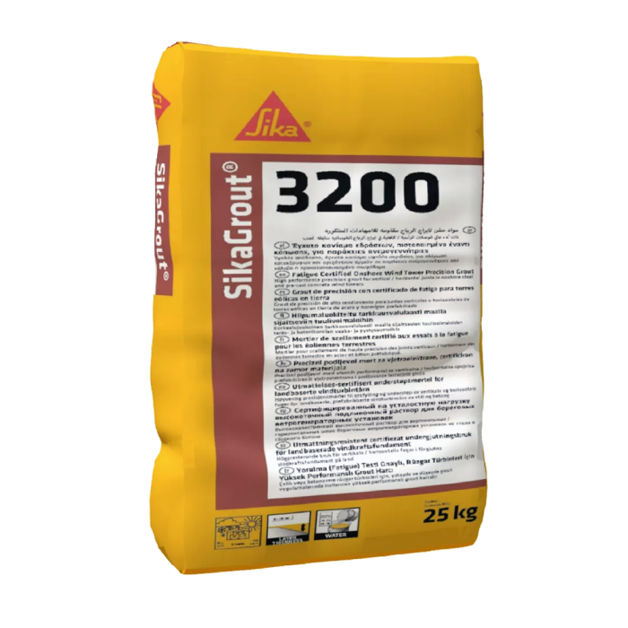 Sika SikaGrout 3200 is a fast hardening, high early strength, high final strength, single component, shrinkage compensated, free flowing cementitious grout for structural filling of joints and under grouting base plates.